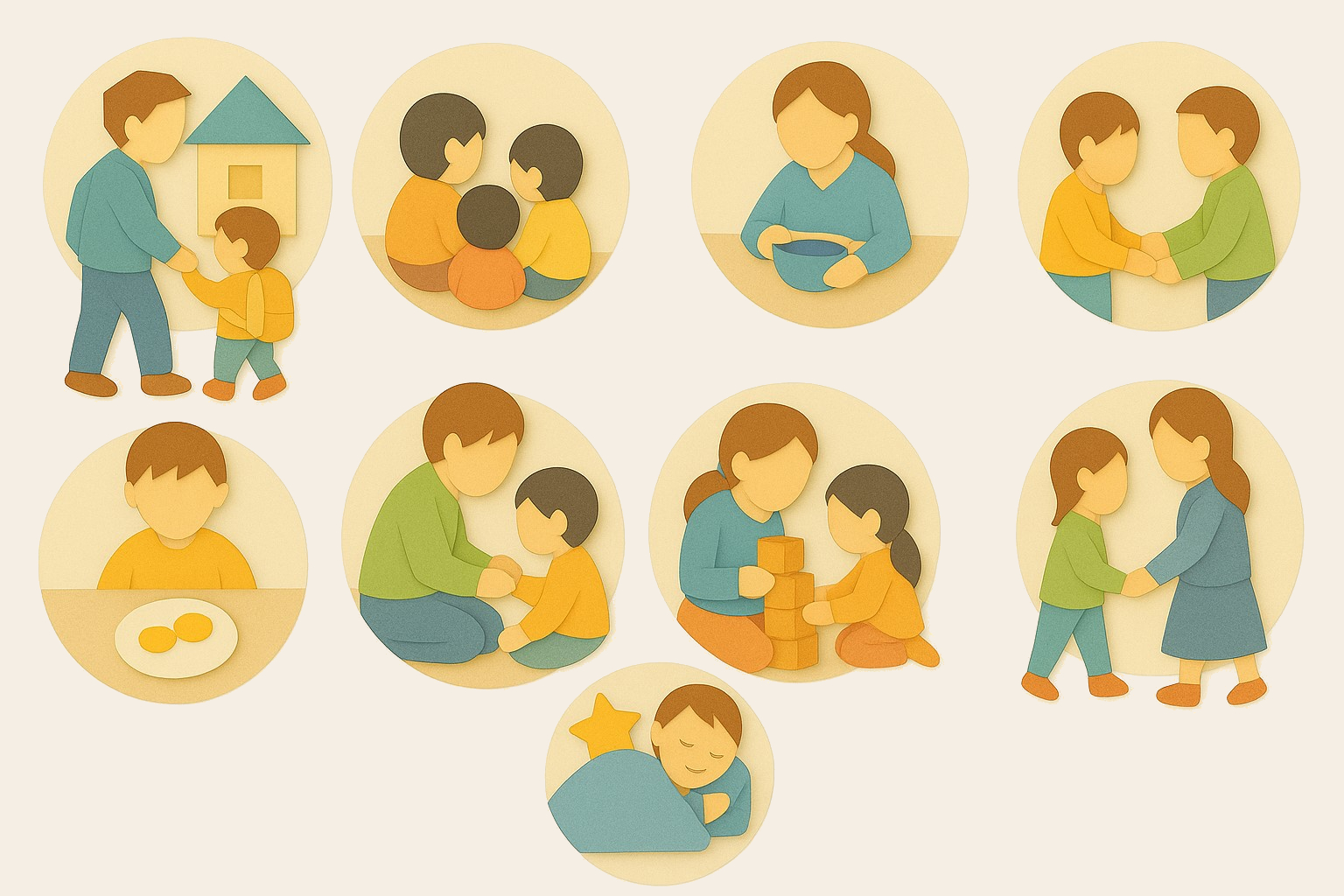 Der Besuch einer Kindertagesstätte stellt einen neuen Lebensabschnitt für Kinder dar und ist am Anfang mit viel Unsicherheit verbunden. In unserer Einrichtung orientieren wir uns an dem Berliner Eingewöhnungsmodell. Ziel ist es, in Zusammenarbeit mit den Sorgeberechtigten bzw. einer Bezugsperson, das Vertrautwerden mit der neuen Umgebung und den Aufbau einer Beziehung zur Erzieherin zu ermöglichen. Abgeschlossen ist die Eingewöhnung, wenn das Kind eine bindungsähnliche Beziehung zu einer Erzieher*in aufgebaut und Sicherheit gewonnen hat. In dieser Zeit lernen Kinder und Sorgeberechtigte unseren Kindergarten und dessen Abläufe in Ruhe kennen. Wie lange eine Eingewöhnung dauert, ist individuell vom Kind abhängig. In einem offenen und vertrauensvollen Austausch sprechen wir die Dauer der Eingewöhnung mit den Sorgeberechtigten ab. Es sollten mindestens 14 Tage für die Eingewöhnung eingeplant werden.